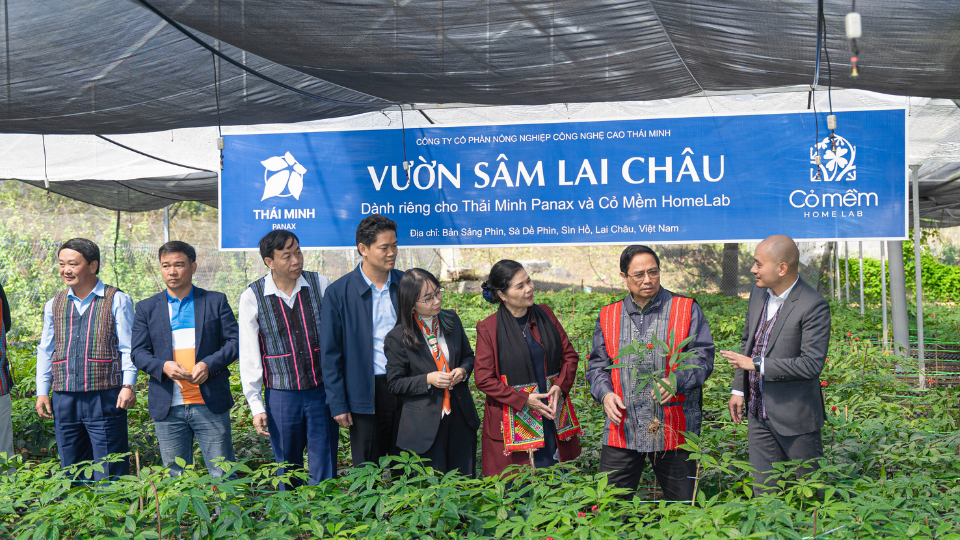 Với vòng tuần hoàn kinh tế bền vững gồm 4 nhà: nhà nông - nhà nghiên cứu - nhà sản xuất - nhà phân phối, Dược phẩm Thái Minh góp phần phát triển bền vững cây Sâm Lai Châu và nông nghiệp xanh tại mảnh đất Sìn Hồ.Bản Sảng Phìn, xã Sà Dề Phìn, huyện Sìn Hồ, tỉnh Lai Châu gần một năm nay như thay da đổi thịt. Hơn một nửa số nhà ở đây có mái mới, xe máy mới, nhiều vật dụng trong nhà được sắm sửa khang trang.   Chị Sùng Thị Sua, dân tộc H’Mông, một người dân trong bản, tham gia trồng cây sâm tại Công ty Nông nghiệp công nghệ cao Thái Minh (Thái Minh Farm) được hơn 1 năm. Chị kể trước đây gia đình chỉ trồng lúa, ngô, thỉnh thoảng lên rừng đào sâm nhưng cũng chạy ăn từng bữa. Từ khi làm việc và cung cấp các loại giá thể trồng sâm tại vườn Thái Minh Farm, thu nhập cải thiện, ngôi nhà nhỏ của gia đình chị thêm nhiều niềm vui, con cái được học hành đầy đủ. Từ chỗ thỉnh thoảng đào được cây sâm trong rừng mang bán, nay người dân nơi đây coi cây sâm là một phần của cuộc sống.  Người dân xã Sà Dề Phìn chăm sóc cây tại vườn Sâm Lai Châu. Ảnh: Dược phẩm Thái MinhMong muốn mọi người dân đều có thể sử dụng sâm Sâm Lai Châu là loại dược liệu quý và hiếm, được đưa vào Danh lục Đỏ cây thuốc Việt Nam, có hàm lượng saponin cao, hiệu quả tốt. Tuy nhiên, loại sâm này trong tự nhiên còn rất ít.Ông Nguyễn Quang Thái, Chủ tịch HĐQT Công ty Cổ phần Dược phẩm Thái Minh cho hay: “Ý tưởng lựa chọn phát triển trồng và chế biến cây Sâm Lai Châu đến từ chính lời kêu gọi của UBND tỉnh về việc phát triển các loài dược liệu quý hiếm tại tỉnh, trong đó có cây sâm”. Tham gia nghiên cứu để đầu tư vào tỉnh Lai Châu từ tháng 2/2022, 4 tháng sau, Dược phẩm Thái Minh đã bắt đầu xây dựng vườn trồng đầu tiên của mình tại xã Sà Dề Phìn, huyện Sìn Hồ. Tại đây, doanh nghiệp xây dựng mô hình theo hướng trồng sâm trong nhà màng công nghệ cao, nhận chuyển nhượng lại toàn bộ vườn sâm từ Hợp tác xã Sâm và thảo dược Sìn Hồ. Hiện tại, Thái Minh Farm đang sở hữu vùng trồng Sâm Lai Châu gần 2ha với hàng trăm nghìn cây sâm có tuổi đời từ 1- 6 tuổi. Đơn vị áp dụng công nghệ cao vào sản xuất: nhà màng và đất tự trộn, giúp kiểm soát 99% các yếu tố dịch bệnh, côn trùng, khí hậu, độ ẩm của cây. Trong tương lai, diện tích trồng sâm sẽ mở rộng lên gấp 10 lần thành 20ha. “Thái Minh sẽ đưa cây sâm Lai Châu từ chỗ trồng ở dưới tán rừng thành một loại cây có thể trồng đại trà ở độ cao trên 1.500m, giảm giá thành để mọi người tiêu dùng đều có thể tiếp cận và sử dụng các sản phẩm từ loài thảo dược được coi là quốc bảo này, thay vì “định kiến” sâm chỉ dành cho người có điều kiện”, ông Thái nói.Thái Minh đặt mục tiêu gia tăng giá trị kinh tế - xã hội cho bà con khi thành lập Thái Minh Farm tại Sìn Hồ, Lai Châu. Ảnh: Dược phẩm Thái MinhLối đi riêng giúp Dược Thái Minh tự tin nâng tầm cây Sâm Lai Châu  Dược phẩm Thái Minh một trong những doanh nghiệp tiên phong phát triển cây Sâm Lai Châu và xây dựng vòng tuần hoàn kinh tế bền vững gồm 4 nhà: nhà nông - nhà nghiên cứu - nhà sản xuất - nhà phân phối. Cụ thể là Thái Minh Farm - vùng trồng ứng dụng nông nghiệp công nghệ cao - Viện nghiên cứu Sâm và dược liệu Việt Nam - nhà máy sản xuất TPCN Thái Minh Hi-tech và nhà máy Mỹ phẩm Thiên nhiên Song An - Thái Minh Panax và Cỏ Mềm Homelab.Nguồn nguyên liệu từ Thái Minh Farm sẽ cung cấp cho đầu vào của nhà máy Thái Minh Hi-tech và Nhà máy Mỹ phẩm thiên nhiên Song An. Các thành phần của cây sâm được khai thác, trở thành sản phẩm chất lượng, giá trị cho người tiêu dùng cả nước và hướng tới xuất khẩu.Ngay khi vùng trồng được thành lập, lãnh đạo công ty nhận định, chỉ có con đường nghiên cứu khoa học chuyên sâu mới làm gia tăng niềm tin người tiêu dùng, vừa giúp nâng tầm loại dược liệu mà trước nay vẫn được cho là quý giá. Vì thế, Viện Nghiên cứu Sâm và dược liệu Việt Nam được công ty triển khai tại khu công nghệ cao Hòa Lạc (Hà Nội). Các nhà khoa học trong và ngoài nước sẽ thúc đẩy nghiên cứu chuyên sâu, đầy đủ về cây sâm Việt Nam. “Chúng tôi không muốn dừng lại ở việc bán hàng bằng câu chuyện mà để phát triển bền vững, cần những minh chứng khoa học về sâm và các sản phẩm từ dược liệu này”, ông Thái chia sẻ về lối đi riêng đầy tính đột phá của Thái Minh.Tiếp đó, 2 công ty kinh doanh là Cỏ Mềm Homelab và Thái Minh Panax đã có những sản phẩm đầu tiên ra mắt thị trường. Đó là Trà sâm Việt Nam nguyên lá và bộ Mỹ phẩm thiên nhiên Sâm 1700. Đây đều là những sản phẩm tiền đề có chứa hàm lượng chất xám cao, cũng là những sản phẩm đầu tiên giúp cho vòng tuần hoàn phát triển Sâm Lai Châu được vận hành bền vững. Thủ tướng Phạm Minh Chính thăm vườn sâm Lai Châu tại xã Sà Dề Phìn - Ảnh: VGPV