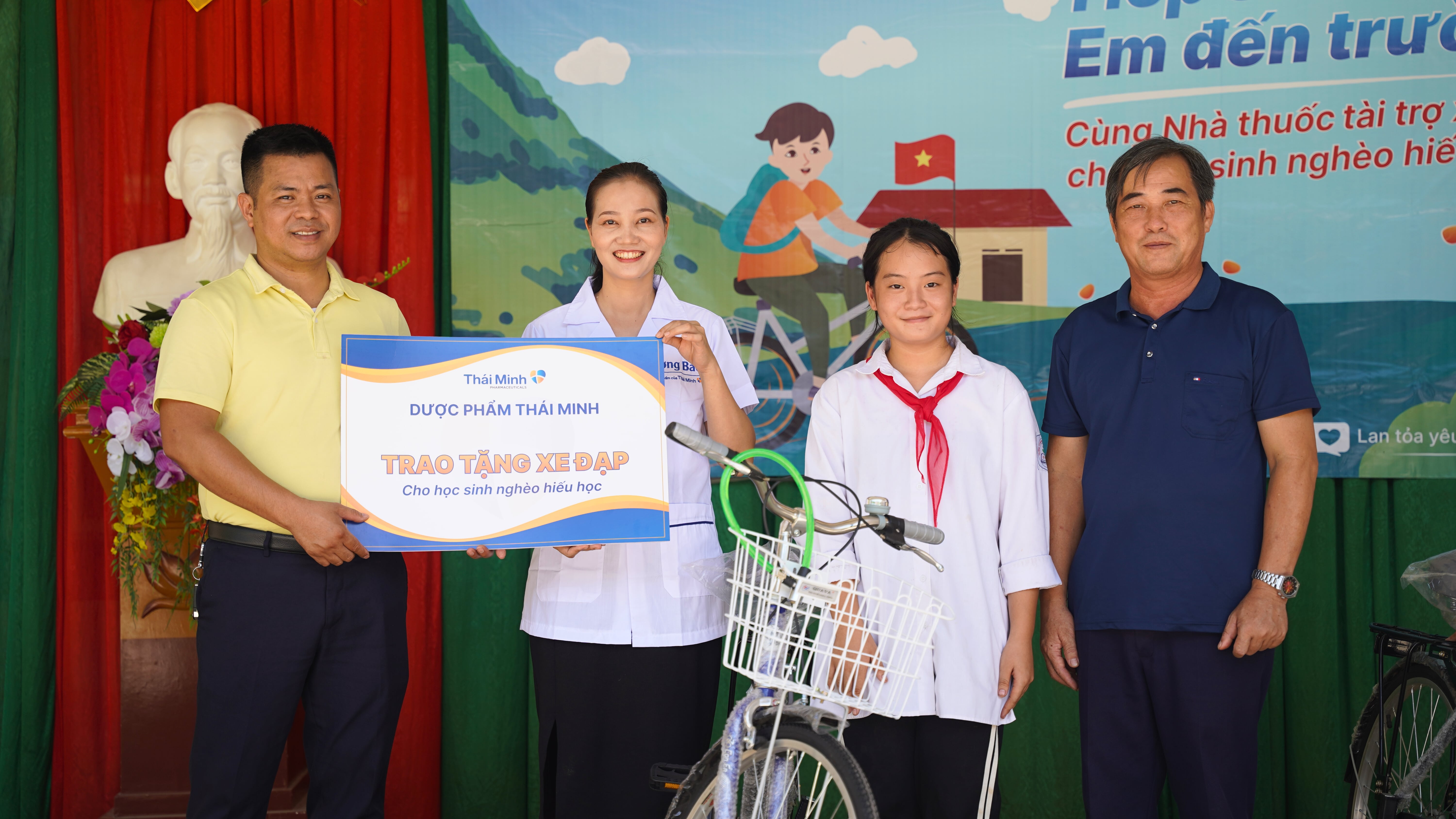 Cùng nhà thuốc Ba Định, quầy thuốc Phi Yến, nhà thuốc Thanh Bình, nhà thuốc Minh Tâm, nhà thuốc Nam Thành, Dược phẩm Thái Minh đã dành tặng những chiếc xe đạp cho học sinh nghèo hiếu học của tỉnh Quảng Ngãi, mang niềm vui vô bờ cho các em.Tỉnh Quảng Ngãi, Việt Nam còn đang đối diện với một số khó khăn và thách thức như: Kinh tế chưa đồng đều, tỷ lệ người dân sống dưới mức nghèo; thiên tai và biến đổi khí hậu: gây nguy cơ khó khăn cho nông nghiệp và đời sống của người dân; việc làm và giáo dục do khó khăn về việc làm và kinh tế, nhiều người dân Quảng Ngãi phải chọn lao động xa quê hương, nhiều trẻ em không nhận được chăm sóc đầy đủ của cả cha và mẹ.Dược phẩm Thái Minh & nhà thuốc Ba Định tới tận nhà trao tặng xe đạp cho học sinh có hoàn cảnh khó khănThấu hiểu nỗi vất vả đó, nhân dịp đầu năm học mới, với sự đồng hành của các nhà thuốc địa phương, Dược phẩm Thái Minh đã dành tặng những chiếc xe đạp cho học sinh có hoàn cảnh khó khăn của tỉnh Quảng Ngãi. Nhận được món quà, các em vô cùng mừng rỡ. Nụ cười hồn nhiên, vô tư của các em càng nhắc nhở người lớn phải cố gắng hơn nữa để xây dựng quê hương Quảng Ngãi ấm no, đầy đủ hơn.Lễ trao xe đạp tại nhà thuốc Thanh Bình, Quảng Ngãi Hi vọng rằng, chiếc xe đạp sẽ là một người bạn mới của các em. Chiếc xe đạp không chỉ là một phương tiện di chuyển, mà còn là một công cụ giáo dục và phát triển quan trọng trong cuộc sống. Từ nay, các em sẽ có nhiều hoạt động thể chất giúp tăng cường trao đổi chất hơn; các em sẽ tự tin bản thân hơn khi chủ động, thành thạo kỹ năng để ứng dụng cho nhiều khía cạnh trong cuộc sống.Lễ trao xe đạp tại trường học cho 2 em học sinh do quầy thuốc Phi Yến giới thiệuHành trình trao yêu thương tại tỉnh Quảng Ngãi đã kết thúc và sẽ còn gặp lại các em trong tương lai.  "Trái đất này có nhiều điều tuyệt vời, và các em nhỏ là một phần của chúng. Hãy giữ cho trái tim mình luôn mở và đón nhận những điều kỳ diệu này.", Dược phẩm Thái Minh xin mượn câu nói nổi tiếng trên thay lời chúc các em có một năm học thật đáng nhớ.