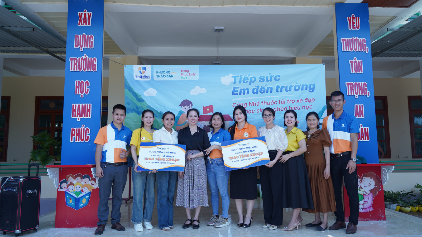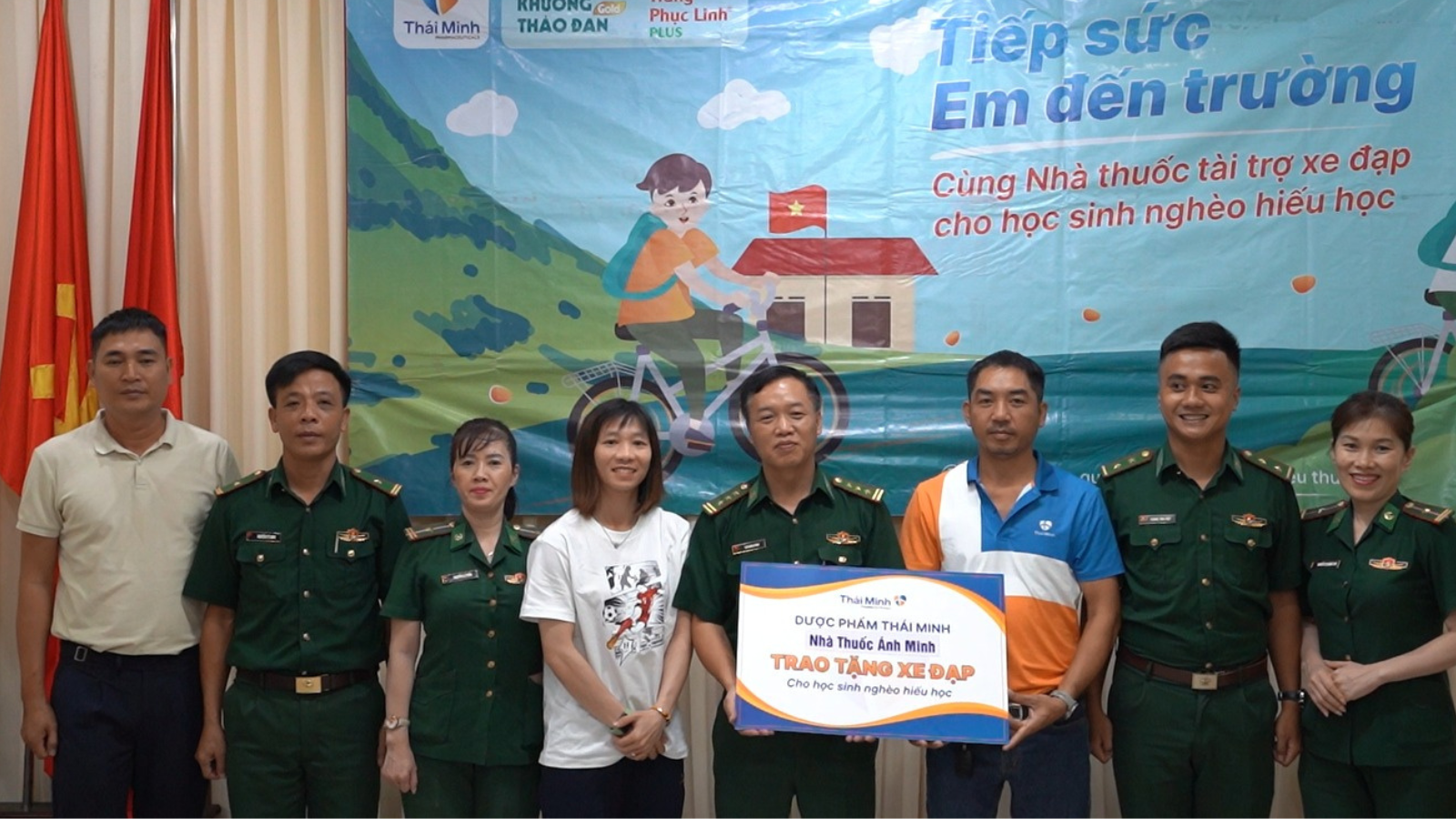 Với sự tham gia của nữ cầu thủ Trần Thị Thuỳ Trang - cô gái vàng của bóng đã nữ Việt Nam và nhà thuốc Mai Anh, nhà thuốc Ánh Minh, sự kiện trao xe tại Quảng Nam trở nên vô cùng đặc biệt. Đặc biệt hơn, 18 em nhỏ được trao xe là 18 con nuôi của Bộ Chỉ huy Biên phòng tỉnh Quảng Nam. Đây là những trường hợp em nhỏ có hoàn cảnh vô cùng khó khăn được nhà báo Trần Trọng An - Báo Gia Đình Mới giới thiệu cho Dược phẩm Thái Minh.Hiểu được hoàn cảnh khó khăn, thiệt thòi của các em, nữ cầu thủ Thuỳ Trang vô cùng xúc động & mong muốn chia sẻ những điều tốt nhất dành cho những mầm non tương lai của địa phương.Đồng hành cùng các tổ chức, địa phương, mạnh thường quân có tấm lòng vàng, Dược phẩm Thái Minh đã và đang làm hết trách nhiệm của mình trong việc hỗ trợ, chăm sóc và giúp đỡ trẻ em nghèo hiếu học. Chiến dịch Tiếp sức em đến trường góp phần sẻ chia, nuôi ước mơ con chữ cho các em và giúp các em có hoàn cảnh khó khăn vươn lên trong cuộc sống.