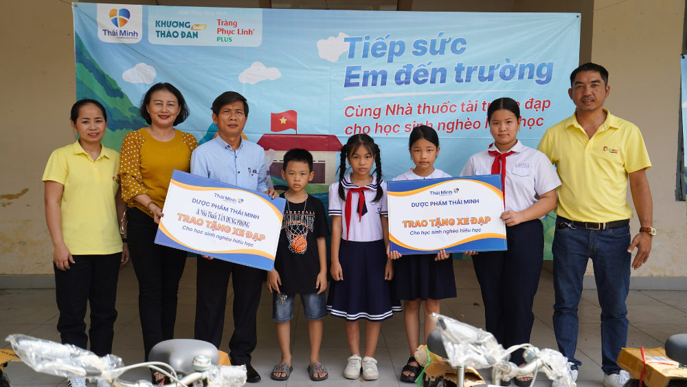 Chính thức phát động từ tháng 3/2023, “Tiếp sức em đến trường” do Dược phẩm Thái Minh phối hợp với các nhà thuốc trên toàn quốc, chính quyền địa phương đã trao tặng hơn 300 chiếc xe đạp cho trẻ em nghèo hiếu học trên mọi miền tổ quốc. Dự án góp phần nâng bước đi tới trường cho học sinh có hoàn cảnh khó khăn, vươn lên học tốt, nâng đỡ cho những giấc mơ tươi đẹp của các em.Tính đến nay, hơn 300 chiếc xe đạp cùng hàng ngàn phần quà là balo, mũ, sách vở... đã được đại diện Dược phẩm Thái Minh cùng nhà thuốc địa phương trao tận tay cho các em học sinh nghèo hiếu học của hơn 20 tỉnh thành, nhằm khích lệ tinh thần học tập và ý chí vươn lên hướng tới sự phát triển nền giáo dục nước nhà, mang tới điều tốt đẹp cho cộng đồng, xã hội.Ước mơ của bạn nhỏ tại tỉnh Thừa Thiên HuếTrong tháng 8, bạn Nguyễn Tịnh Bảo Ngọc (10 tuổi, thường trú tại phường Thuận An, thành phố Huế) được trao tặng một chiếc xe đạp cùng phần quà của nhà thuốc Thiện Trí. Bảo Ngọc là con gái út trong gia đình hộ nghèo, kinh tế hoàn toàn phụ thuộc vào biển nên rất vất vả. Không may, bố em đang điều trị căn bệnh ung thư tuyến giáp. Bố vừa ra biển kiếm tiền, vừa chạy chữa căn bệnh quái ác. Mẹ em cũng lo đi chợ và kiếm thêm công việc nuôi Bảo Ngọc và chị gái.  Chính vì vậy, em cũng rất chủ động làm việc nhà để bố mẹ yên tâm chữa bệnh. Chiếc xe đạp sẽ giúp em tự đến trường, giúp đỡ mẹ nhiều công việc ngoài chợ....Em Ngọc được nhận một chiếc xe đạp do Dược phẩm Thái Minh cùng nhà thuốc Thiện Trí (Huế) trao tặngSắp vào năm học mới, Bảo Ngọc và chị gái sẽ quyết tâm duy trì danh hiệu học sinh giỏi. Việc học ở lớp cao hơn sẽ khó khăn vì có nhiều kiến thức mới, tuy nhiên, Dược phẩm Thái Minh và nhà thuốc Thiện Trí sẽ luôn đồng hành để hỗ trợ em trong tương lai.Người bạn mới của hai chị em tại nơi biên cươngBạn Phạm Gia Hân (12 tuổi) & Phạm Gia Bảo (8 tuổi) là hai chị em ruột, được Bộ Chỉ huy Biên phòng tỉnh Quảng Nam nuôi dưỡng tại Đồn Biên phòng Bình Minh. Hai chị em đều rất ngoan ngoãn, thông minh, lễ phép và biết nghe lời các chú bộ đội. Hoàn cảnh gia đình của các em rất éo le. Mẹ các em không may sau một đợt ốm nặng đã ảnh hưởng tới tay chân, dẫn tới sinh hoạt hàng ngày rất khó khăn. Gánh nặng kinh tế dồn hết lên bố của các bé. Thương thay, năm 2022, anh đã mất sau một tai nạn.Thấu hiểu những vất vả của gia đình cùng lời giới thiệu của Bộ Chỉ huy Biên phòng tỉnh Quảng Nam, Dược phẩm Thái Minh đã tài trợ 02 chiếc xe đạp cho Gia Bảo và Gia Hân. Với chiếc xe đạp mới, các em có thể tự di chuyển từ đồn biên phòng đến trường học, đỡ đần các chú bộ đội những công việc phù hợp. Sống trong môi trường quân đội cũng sẽ giúp các em trưởng thành hơn, chín chắn hơn để thực hiện ước mơ chữa bệnh cho mẹ. Ngay bây giờ, khi khi chưa thể làm bác sĩ "xịn", hai em sẽ cố gắng học thật giỏi để mẹ yên tâm, tự hào.Hạnh phúc khi hỗ trợ cho các học sinh  của địa phươngTrong hành trình trao xe tới mọi miền tổ quốc, Dược phẩm Thái Minh may mắn được đồng hành với những nhà thuốc địa phương không chỉ kinh doanh giỏi mà còn đi đầu trong công tác thiện nguyện. Anh Nguyễn Đình Hiền - chủ nhà thuốc Hiền Tươi tại huyện Lương Tài, tỉnh Bắc Ninh là một ví dụ. Ngay khi nghe giới thiệu về chiến dịch từ trình dược viên Thái Minh, anh Hiền đã liên hệ ngay với các tổ chức chính quyền như nhà trường, hội khuyến học địa phương... và cùng người Thái Minh tới tận nhà các em để tìm hiểu hoàn cảnh gia đình và động viên gia đình kịp thời.Anh Nguyễn Đình Hiền - Chủ nhà thuốc Hiền TươiAnh Hiền chia sẻ: "Từ sự phát động của Dược phẩm Thái Minh, nhà thuốc Hiền Tươi nhận thấy trách nhiệm của mình trong công cuộc xây dựng quê hương và môi trường xung quanh phát triển bền vững. Tôi luôn mong muốn được hỗ trợ và giúp việc học tập của các em nhỏ được đầy đủ hơn. Giờ đây, khi trực tiếp trao tặng những suất quà cho trẻ em nghèo hiếu học, mong muốn của tôi đã trở thành hiện thực. Nhà thuốc Hiền Tươi vinh dự được đồng hành trong chiến dịch đầy ý nghĩa, hi vọng những chiếc xe đạp được công ty trao tặng sẽ chắp cánh cho ước mơ của nhiều học sinh nghèo hiếu học trên toàn quốc."Chiến dịch ngoài thu hút những các cơ quan đoàn thể, nhà trường, Bộ Chỉ huy biên phòng còn có sự chung tay của những mạnh thường quân, những tấm lòng vàng luôn muốn góp sức cho công cuộc phát triển xã hội. Trong đó, nữ cầu thủ Trần Thị Thùy Trang - danh thủ của đội tuyển quốc gia Việt Nam đã trực tiếp trao tặng những phần quà ý nghĩa cho các trẻ em có hoàn cảnh khó khăn tại tỉnh Quảng Nam - quê hương của chị. Thấu hiểu nỗi vất vả khi còn quá nhỏ của các em, nữ cầu thủ Thuỳ Trang vô cùng xúc