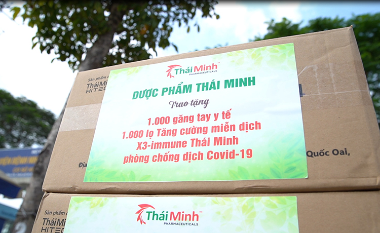 Dược phẩm Thái Minh tặng găng tay y tế và X3-immune cho tuyến đầu chống dịch