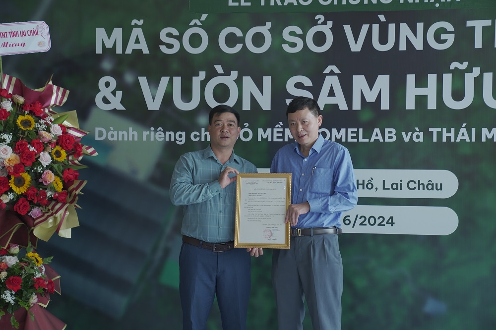 Sáng ngày (10/6), tại huyện Sìn Hồ, Công ty cổ phần nông nghiệp công nghệ cao Thái Minh (Thái Minh farm) đã được trao Chứng nhận mã số cơ sở trồng Sâm Lai Châu và Chứng nhận vườn Sâm đạt tiêu chuẩn hữu cơ. Dự buổi lễ có sự góp mặt của Đồng chí Hà Trọng Hải - Phó Chủ tịch UBND tỉnh Lai Châu, đại diện lãnh đạo Sở Nông nghiệp và Phát triển nông thôn, Sở Khoa học và Công nghệ; đại diện lãnh đạo Huyện Sìn Hồ; đạo diện lãnh đạo xã Sà Dề Phìn; đại diện Công ty Cổ phần Chứng nhận và Giám định IQC…Về phía viện nghiên cứu, có sự góp mặt của Tiến sĩ Phạm Hà Thanh Tùng - Viện trưởng Viện Sâm và Dược liệu Việt Nam.Đồng chí Hà Trọng Hải - Phó Chủ tịch UBND tỉnh Lai Châu góp mặt và phát biểu tại sự kiệnViệc cấp Chứng nhận mã số cơ sở vùng trồng Sâm Lai Châu là mã số định danh cho một vùng trồng trọt nhằm theo dõi và kiểm soát tình hình sản xuất; kiểm soát chất lượng sản phẩm; truy xuất nguồn gốc sản phẩm cây trồng. Mục tiêu của việc cấp Chứng nhận mã số cơ sở vùng trồng là để đảm bảo truy xuất được đến từng vườn trồng, về các loại sinh vật gây hại đã phát hiện trên vườn trồng, các biện pháp quản lý sinh vật gây hại đã được sử dụng trên vườn trồng đặc biệt là ghi nhận về các loại thuốc bảo vệ thực vật, phân bón đã sử dụng. Việc cấp mã số vùng trồng ngoài hiệu quả truy xuất nguồn gốc và đáp ứng yêu cầu của nước nhập khẩu còn giúp tăng khả năng cạnh tranh của hàng nông sản xuất khẩu; thúc đẩy liên kết sản xuất và chuỗi giá trị.Đại diện lãnh đạo Sở Nông nghiệp và Phát triển nông thôn trao Chứng nhận mã số cơ sở vùng trồng cho Công ty cổ phần nông nghiệp công nghệ cao Thái Minh.Dược phẩm Thái Minh là đơn vị sở hữu vùng trồng Sâm Lai Châu 2 héc-ta, hiên đang là doanh nghiệp tiên phong tiêu chuẩn hóa, đưa ra bộ tiêu chuẩn cơ sở về Quy trình nuôi trồng, chăm sóc, theo dõi, thu hái, chế biến và bảo quản chuẩn 7 bước  với cây Sâm Lai Châu. Nhằm tạo ra các sản phẩm từ Sâm mang giá trị cao, chất lượng đồng nhất, uy tín nhất thị trường. Đặc biệt là việc kiểm soát được hàm lượng hoạt chất MR2 trong củ Sâm ở mức cao 8-10 lần tiêu chuẩn Dược điển Việt Nam, đây cũng là hoạt chất quý hiếm giúp Sâm Việt Nam trở thành 1 trong những loài Sâm tốt nhất thế giới.Khác với cách trồng cây sâm Lai Châu dưới tán rừng gây khó khăn trong việc kiểm soát điều kiện thời tiết và điều kiện trồng như trước đây, toàn bộ cây sâm tại công ty Nông nghiệp công nghệ cao Thái Minh được nuôi trồng theo quy trình chuẩn 7 bước khắt khe, trong đó bước đầu tiên chính là việc Kiểm soát điều kiện trồng theo môi trường chuẩn hữu cơ.Vùng trồng Sâm Lai Châu của Thái Minh được cấp chứng nhận Vùng trồng hữu cơ sau gần 2 năm thực hiện chuyển đổi từ 1 tháng 8 năm 2022 đến nay, trở thành vùng trồng Sâm đầu tiên đạt được những điều kiện nghiêm ngặt trong trồng trọt hữu cơ. Theo đó, toàn bộ diện tích đều được trồng trong nhà màng, tạo thành từng luống, hệ thống tưới nước nhỏ giọt tự động tiết kiệm nước, toàn bộ quá trình chăm sóc, phòng trừ sâu bệnh cho cây sâm Lai Châu được kiểm soát chặt chẽ, không sử dụng thuốc trừ sâu và phân bón hoá học.Đại diện Công ty Cổ phần Chứng nhận và Giám định IQC trao Chứng nhận tiêu chuẩn hữu cơ cho Công ty cổ phần nông nghiệp công nghệ cao Thái Minh.Với việc đạt được chứng chỉ hữu cơ này, không chỉ giúp Thái Minh tạo ra nhiều hơn các sản phẩm tốt cho sức khỏe, an toàn với người dùng mà còn là một giải pháp bền vững cho công đồng và môi trường. Không gây tình trạng nhiễm độc đất trồng sau nhiều năm canh tác, không gây ra các đột biến do sử dụng hóa chất liều lượng cao...Phát biểu tại buổi lễ, đồng chí Hà Trọng Hải - Phó Chủ tịch UBND tỉnh đề nghị Công ty thực hiện tốt một số nội dung: “Phát triển Sâm Lai Châu phải được thực hiện đồng bộ từ phát triển vùng nguyên liệu đến chế biến, xây dựng thương hiệu, tiêu thụ sản phẩm; vùng phát triển phải phù hợp với các quy hoạch có liên quan. Phát triển thương hiệu mạnh, có sức cạnh tranh cao, chiếm lĩnh thị trường trong nước và phấn đấu đưa Sâm Lai Châu ra thị trường quốc tế. Gắn phát triển Sâm Lai Châu với phát huy bản sắc văn hóa đồng bào các dân tộc của tỉnh Lai Châu và phát triển du lịch. Tích cực nghiên cứu, ứng dụng công nghệ cao vào canh tác, thu hoạch và chế biến sâu Sâm Lai Châu, nâng cao chất lượng sản phẩm Sâm Lai Châu, đồng hành cùng với Doanh nghiệp, Nhân dân trên địa bàn phát triển Sâm Lai Châu với mục tiêu hài hòa lợi ích…” Đồng chí Hà Trọng Hải - Phó Chủ tịch UBND tỉnh và các đại biểu tham quan, trải nghiệm các sản phẩm đã được thương mại hóa từ Sâm Lai Châu.Tại buổi lễ, đại diện Tập đoàn Thái Minh cũng đã có bài