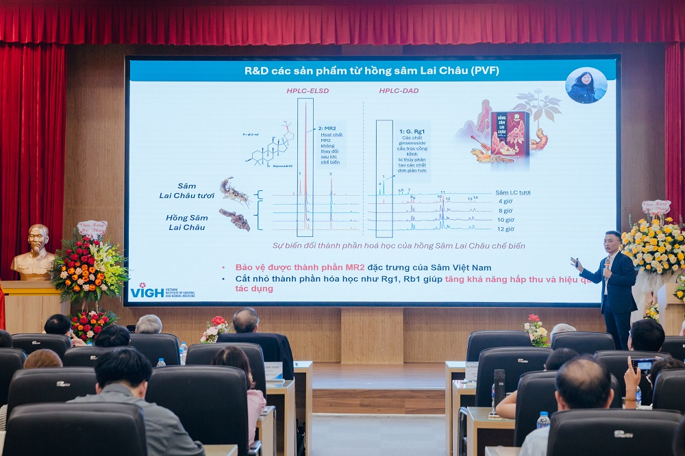 Hà Nội, các chuyên gia hàng đầu từ 2 quốc gia Việt Nam, Hàn Quốc đã chia sẻ và thảo luận các nghiên cứu xây dựng tiêu chuẩn chất lượng cho cây Sâm Việt Nam (Sâm Ngọc Linh, Sâm Lai Châu) và các sản phẩm từ Sâm nàyHội thảo Khoa học với chủ đề “Tiêu chuẩn chất lượng dược liệu sâm (Panax spp) và sản phẩm chăm sóc sức khỏe từ sâm” khai mạc sáng 27/6 tại Viện nghiên cứu Khoa học & công nghệ Việt Nam – Hàn Quốc do chính viện này tổ chức. Hội nghị quy tụ nhiều chuyên gia hàng đầu về sâm và dược liệu trong khu vực châu Á như GS Park Jeong Hill (Đại học Quốc gia Seoul, Hàn Quốc); TS Lê Quang Thảo (Viện Kiểm nghiệm Thuốc Trung ương); TS Phạm Hà Thanh Tùng (Viện nghiên cứu Sâm và Dược liệu Việt Nam)Phát biểu khai mạc, PGS. TS Vũ Đức Lợi, Viện trưởng VKIST cho biết Hội thảo về Sâm Việt Nam năm 2024 do Viện VKIST tổ chức sẽ là cầu nối giữa các doanh nghiệp Việt Nam và địa phương (đặc biệt là tỉnh Lai Châu), trong việc nghiên cứu và phát triển cây sâm Việt Nam và các sản phẩm từ sâm, học tập các kinh nghiệm đi trước của Hàn Quốc.Ông cho hay: “Hội thảo sẽ mở ra những cơ hội để các nhà khoa học, các nhà quản lý và các doanh nghiệp Việt Nam có thể học hỏi kinh nghiệm, kỹ thuật đã thành công của một trong những quốc gia đi đầu về nghiên cứu và phát triển sản phẩm từ nhân sâm”.PGS.Vũ Đức Lợi, Viện trưởng VKIST phát biểu tại sự kiện sáng 27/6.Tại hội thảo, TS Phạm Hà Thanh Tùng, Viện trưởng Viện Sâm và Dược liệu Việt Nam, kỳ vọng thông qua hội thảo, Việt Nam sẽ sớm xây dựng và áp dụng rộng rãi tiêu chuẩn chất lượng cho cây sâm Việt Nam để ai ai cũng được sử dụng các sản phẩm từ sâm chất lượng. TS Phạm Hà Thanh Tùng là một trong những nhà khoa học nghiên cứu hàng đầu về Sâm Lai Châu. Viện Nghiên cứu Sâm và Dược liệu Việt Nam do ông đứng đầu, chịu trách nhiệm nghiên cứu tiêu chuẩn hóa, đưa ra bộ tiêu chuẩn cơ sở về quy trình nuôi trồng, chăm sóc, theo dõi, thu hái, chế biến và bảo quản chuẩn 7 bước với cây Sâm Lai Châu. Quy trình này đang được áp dụng và thử nghiệm tại vườn Sâm Lai Châu của Thái Minh tại Sìn Hồ, Lai Châu. Việc áp dụng quy trình này không chỉ giúp hàm lượng hoạt chất MR2 trong củ Sâm ở mức cao gấp 8-10 lần tiêu chuẩn Dược điển Việt Nam mà còn rất an toàn, không chứa các chất độc hại cho cơ thể.Theo TS Tùng bộ tiêu chuẩn Sâm chuẩn 7 bước cho cây Sâm Lai Châu góp phần đảm bảo tiêu chuẩn chất lượng đồng nhất cho các sản phẩm như sâm tươi, rượu sâm, trà sâm, sản phẩm chế biến sâu có hàm lượng chất xám cao khác. Hiện nay, TS Tùng và nhóm nghiên cứu đã có thành quả về nghiên cứu ứng dụng sâm Việt Nam, đó là sản phẩm Hồng Sâm Lai Châu đầu tiên trên thị trường.Do thói quen người Việt, sâm Lai Châu chủ yếu được sử dụng ở dạng tươi hoặc sấy khô, chưa có sản phẩm chế biến sâu. Nhận thấy tiềm năng to lớn, nhóm nghiên cứu của TS. Tùng đã tập trung phát triển công nghệ chế biến hồng sâm Lai châu, với kỳ vọng tạo ra bước đột phá cho sâm Việt Nam, tương tự như thành công của ngành sâm Hàn Quốc. TS Tùng cho biết thách thức lớn nhất trong quá trình chế biến Hồng sâm Lai Châu là khử vị đắng gắt có trong củ sâm tươi. Nhóm nghiên cứu đã thành công trong việc phát triển một quy trình sơ chế đặc biệt không chỉ loại bỏ được phần lớn vị đắng mà còn giữ được các thành phần quý trong Sâm Lai Châu như MR2. Việc chế biến Hồng Sâm Lai Châu này cũng giúp cắt nhỏ các hoạt chất như Rg1, Rb1 thành những hợp chất nhỏ hơn giúp tăng khả năng hấp thu, từ đó nâng cao hiệu quả khi sử dụng.Một số tài liệu nghiên cứu cũng cho thấy, sâm Lai Châu có nguồn gen đặc biệt quý hiếm với Việt Nam và thế giới. Tất cả bộ phận của cây đều có thể dùng làm thuốc. Thân rễ thường được dùng làm thuốc bổ, cầm máu, tăng cường sinh lực, chống stress. Lá, nụ hoa dùng làm trà uống có tác dụng kích thích tiêu hóa, an thần. Sâm Lai Châu có vị ngọt, hơi đắng, tính ôn, có tác dụng gần giống với tác dụng của nhân sâm.TS Phạm Hà Thanh Tùng trình bày tại hội thảoTrong phần thảo luận sau báo cáo, GS. Nguyễn Thiện Nhân - Đại biểu quốc hội, nguyên Phó Thủ tướng Chính Phủ, Bí thư Thành uỷ Hồ Chí Minh cho rằng: VKIST cần phối hợp với các bộ ngành liên quan xúc tiến triển khai sớm nhất việc đưa ra tiêu chuẩn chất lượng dược liệu sâm, có thể thành lập Hiệp hội Sâm Việt Nam để thực hiện và triển khai các hoạt động. Bởi không biết tiêu chuẩn thì không tiếp thị được, uống không biết khoẻ vào đâu, hàng thật hàng giả, nước ngoài cũng không biết nên dùng hay không.GS Nguyễn Thiện Nhân tại hội thảo sâm 2024Đây là năm thứ hai Viện Khoa học và Công nghệ Việt Nam – Hàn Quốc (VKIST) tổ chức hội thảo khoa học về sâm kể từ năm 2023. Đơn vị thường xuyên tổ chức các hoạt động hội thảo 